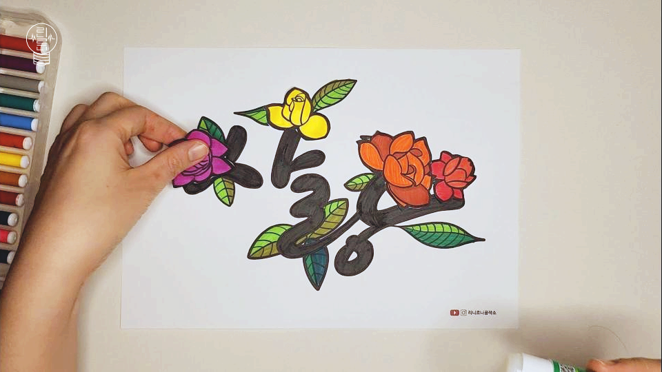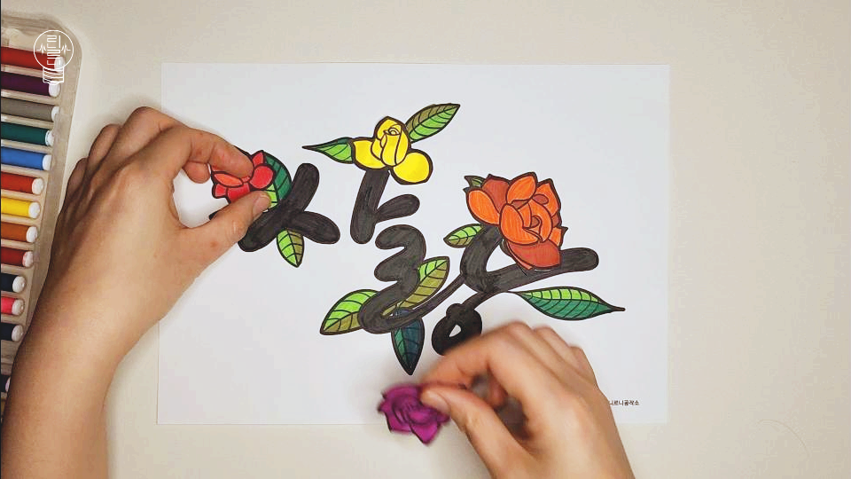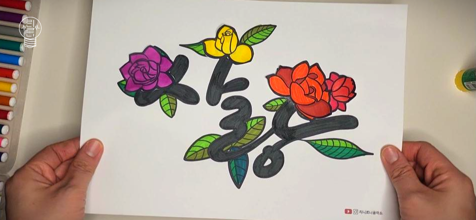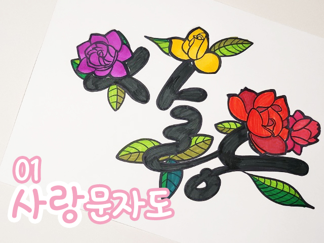 오늘 소개해 드릴 미술 활동은 '사랑 문자도' 컬러링입니다. 문자도란 특정 단어나 문장을 그림과 함께 표현하는 전통적인 방식인데요. 이번 활동에서는 전통 민화보다는 가볍고 수행하기 쉽게 변형하여 "사랑"이라는 글자를 "장미"와 함께 아름답게 꾸며보는 시간을 가져보겠습니다.