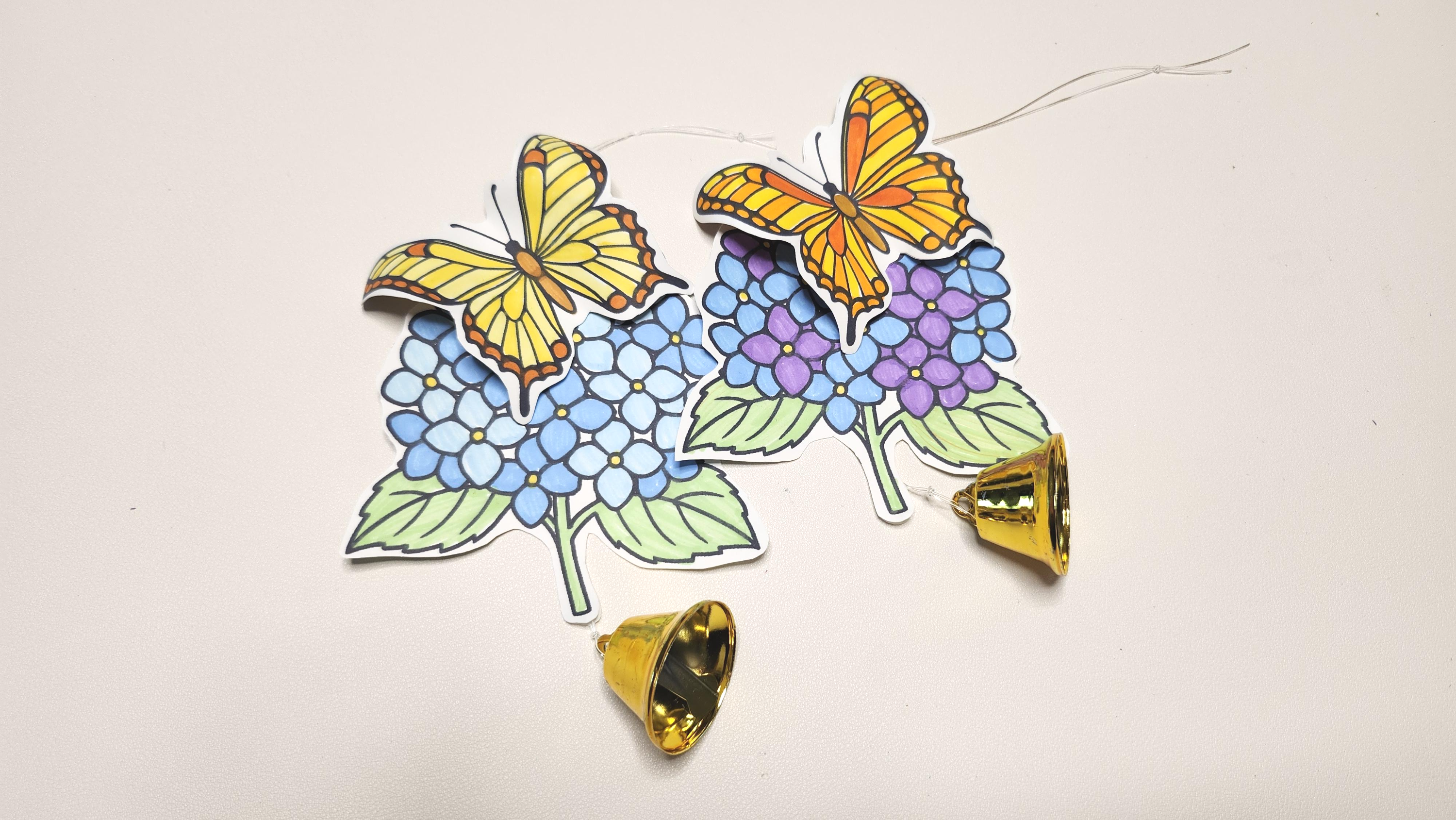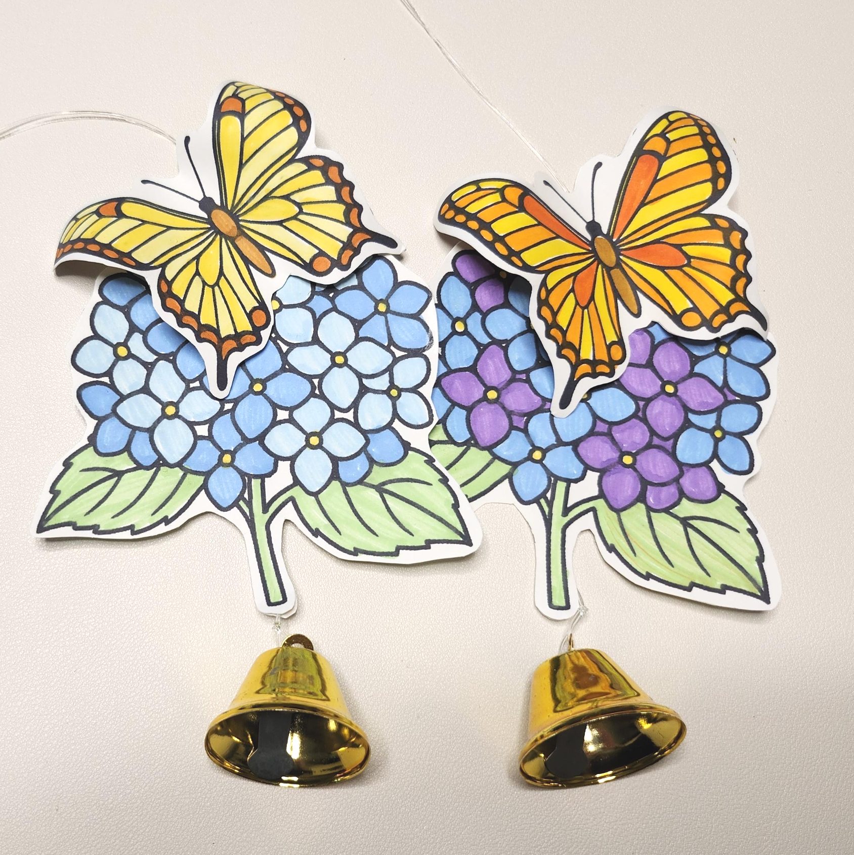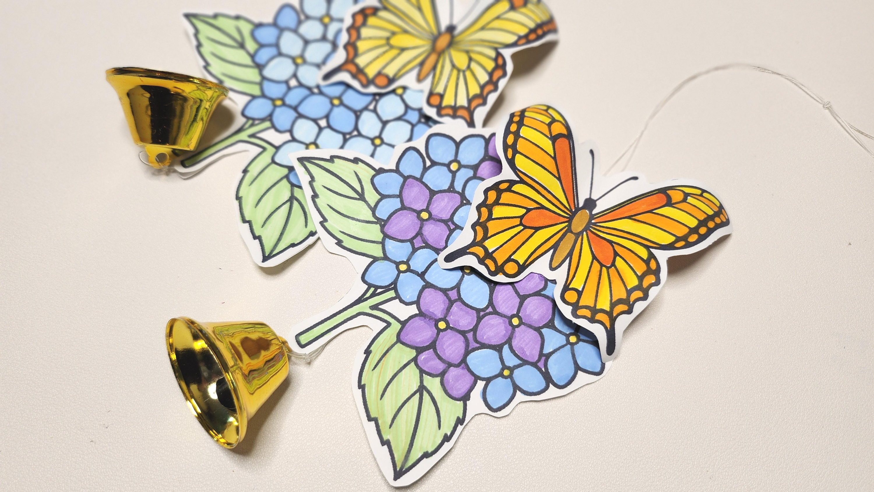 무더운 여름, 창문 너머로 불어오는 바람결에 종소리가 함께 들리면 기분이 얼마나 상쾌할까요? 오늘은 그 소리를 직접 만들어보는 종이 공예 활동을 소개해보려 해요. 주제는 바로 ‘수국 위에 팔랑거리는 나비’ 풍경 만들기입니다. 도안을 출력해 색칠하고 오려서 양면으로 붙이고, 우레탄 줄과 종을 연결해 흔들리면 맑은 소리가 나는 여름 풍경을 완성할 수 있어요. 아이들에게는 창의력 발달과 풍경이라는 전통적 소품에 대한 소개를, 어르신들에겐 감각 자극과 정서적 안정을 줄 수 있는 멋진 활동이에요.