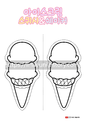 총 6장의 도안이 제공되며, 그 중 3장은 쉐이커 버전으로, 나머지 3장은 주물주물 스퀴시로 만들 수 있도록 준비했어요. 구성은 다음과 같아요. 먼저 디자인이 완성된 아이스크림 2가지, 그리고 내가 원하는 스타일로 직접 꾸며볼 수 있는 빈 도안 1가지. 여기에 각각 스퀴시용 버전이 따로 3장 더 포함되어 있어 다양하게 즐길 수 있어요.