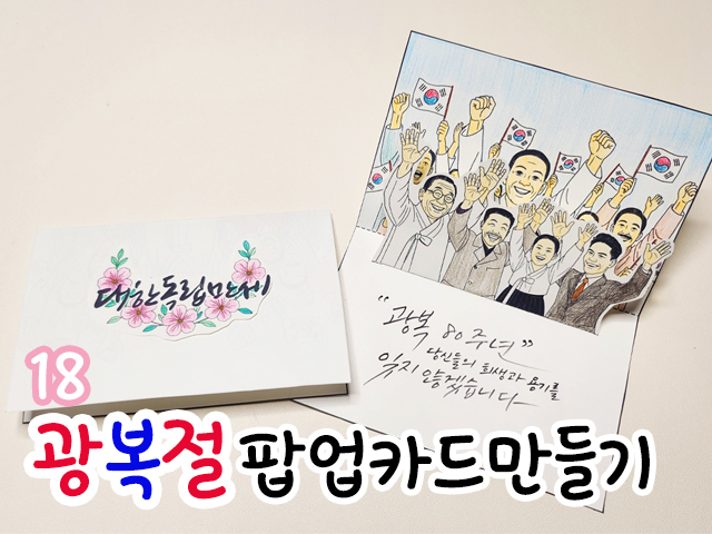 이 날은 단지 과거를 기억하는 것이 아니라, 우리가 지켜온 민주주의와 자유를 다음 세대에게 어떻게 전할 것인가를 되돌아보는 시간이기도 합니다. 이런 날, 아이들, 어르신들과 함께 광복절의 의미를 자연스럽게 배우고 되새기는 시간으로 "광복절 팝업카드"를 만들어 보는 건 어떨까요?